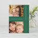 Na moda Natal dois cartões com fotos apresentam um design de faixa bonito em tons de verde de Natal modernos para um simples cartão de saudação de Natal elegante. Personalize este cartão elegante com a sua fotografia da família favorita e o seu nome personalizado com uma saudação sazonal editável.