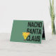Um cara de chips de tortilha num traje de Papai Noel cafona diz que é o Nacho Papai Noel na capa deste cartão de Natal cafona, com o seu rosto sorridente dentro. Boas festas para você.