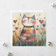 Gato Namorados de Patchwork de Watercolor num campo de flores do coração.