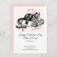 Namorados de gato bonito para mãe e pai com um gato deitado em livros, texto engraçado curto diz: Obrigados por me deixar sempre superar suas coisas. PS: Minha pata não é tão boa. Se você olhar de perto, verá que a página aberta do livro diz "m" é para o mouse". Um pequeno gato lendo!