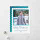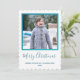 Um cartão de Natal de foto branco e azul com texto personalizável. Basta adicionar sua foto e mensagem, adicionar este cartão ao seu gato e, em seguida, enviar alegria de feriado para seus amigos e familiares. <i>Fotografia © Storytree Studios, Stanford, CA</i>