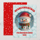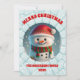 Cartão de Natal de boneco de neve 3D. Apresenta um boneco de neve de férias festivas com tipografia vermelha escura e cor de fundo.