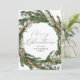 Moderno e mínimo roteiro de flores prateado Cartão de Natal Feliz. O eucalipto pintado à mão, o ramo do pinheiro, a folhagem mínima e a coroa rattan moderna dão a este cartão de feriado uma sensação luxuosa. Em verdes clássicos, castanhos e cinzentos.