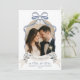 Celebre a alegria da sua primeira temporada de festas juntamente com esta elegante cartão com fotos de casamento do Primeiro Natal. Apresentando um retrato personalizado de um casal enquadrado com sotaques de fita de cor d'água, holly festivo e florais de inverno suaves, este cartão de Natal personalizado para recém-casados é o melhor guardião para compartilhar seu amor com a família e os amigos. A design destaca a sua foto de casamento, complementada por uma fonte clássica de script anunciando "Primeiro Natal como Sr. & Sra.", juntamente com seus nomes impressos elegantemente abaixo.