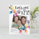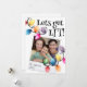 Mande sua alegria de férias esta temporada com um cartão de Natal personalizado 'Vamos Leve'! Apresentando uma exibição brilhante e ousada de luzes em volta da foto e do nome instantâneos de sua família, esta placa certamente fará uma impressão duradoura. Coloque o toque perfeito no seu feriado com este design único e festivo!