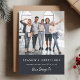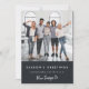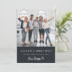 Um cartão de cartões de natal plano fotográfico de uma equipe empresarial moderna da na moda com uma citação de tipografia ousada, "Saudações da Época", em branco, com uma cor de fundo preto. A saudação e o nome da empresa podem ser facilmente personalizados para se adequarem aos seus próprios negócios. O design apresenta uma mensagem opcional para os seus clientes no futuro para obrigado-los para os seus negócios e lealdade e desejar-lhes paz, prosperidade e alegria no período de férias. Uma design de tendências, diversão e profissionais para se destacar nesta temporada de festas! A imagem mostrada é apenas para fins de ilustração para ser substituída pelo retrato do seu próprio grupo ou outra foto. A imagem de marcador de posição é de uma equipe de cinco posando em um escritório urbano mínimo de tendência.