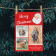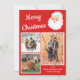 Este cartão festivo e divertido de fotos está pronto para ser personalizado com três das suas próprias fotos e a sua própria mensagem e apresenta um esquema de cores vermelhas e brancas com um gráfico de estilo retrô Papai Noel ao lado da mensagem "Feliz Natal" em letras brancas.