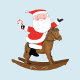 Criativo cartões de natal de Natal com tema de cavalo, com desenhos engraçados de Papai Noel andando alto na sela.