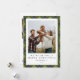 Cartão de Natal verde moderno, com uma foto de família grande na frente, com espaço para seu nome e ano. O verso inclui uma colagem de três fotos e uma área de mensagem. Um eterno de férias clássico para compartilhar saudações festivas.
