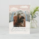 Celebrar a magia da estação com este elegante cartão de Natal "Acredite", com a sua fotografia enquadrada numa janela de arco, cercada por uma floresta nevada e por delicadas árvores de inverno. Um céu sonhador com neve caindo e nuvens adiciona um toque aconchegante a esta design de férias romântica e quente. Perfeito para casais ou famílias. Este cartão também está disponível como download digital para compartilhamento rápido e fácil.
