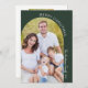 Este cartão fotográfico de Natal apresenta uma foto arquitetada moderna na frente e outra foto vertical no verso. O design minimalista oferece um texto branco que se curva graciosamente ao longo da borda da imagem, com destaque para um elegante guião manuscrito sobre um fundo verde escuro. Adicione sua mensagem pessoal no verso.