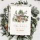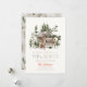 Este doce cartão de Natal "novo lar para os feriados" apresenta uma casa de madeira/casa de algodão/cabana, veado e árvores em neve. O verso apresenta um fundo castanho claro com padrões caseiros e de árvores. Personalize-o para as suas necessidades. Você pode encontrar produtos correspondentes na minha loja.