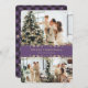 Cartões de natal de fotos de xadrez de búfalos roxos elegantes com holly e bagas. Personalize facilmente este cartão de xadrez roxo com as suas fotografias e um nome de família.