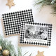 Este cartão de Natal rústico apresenta um padrão de fundo de xadrez de verificação de búfalos preto e branco. Personalize-o com a foto da sua família e uma mensagem em fonte de estilo impressionante de impressão manual.