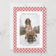 Enviar Feriados Quentes com um Cartão de Natal Personalizado na Xadrez Cozy Red Gingham Comemora a temporada em estilo com um cartão de Natal personalizado que é aconchegante e elegante. Apresentando um charmoso fundo de xadrez vermelho de gingham vermelho de maçã, esta placa combina calor rústico com um design limpo e moderno — perfeito para espalhar alegria de férias para amigos, familiares e entes queridos. Personalize-o com a sua foto favorita para criar uma saudação única que reflita a sua personalidade. No verso, adicione uma mensagem sincera ao lado de uma silhueta e quadro de pinheiros vermelhos de Natal, amarrando tudo com um talento festivo. Com seus tons quentes e o padrão clássico de xadrez, este cartão complementa qualquer tema de feriado — seja você enviando saudações da temporada, alegria de Natal ou desejos de Ano Novo. É uma maneira significativa de permanecer conectado e compartilhar o espírito da estação.