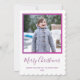 Um cartão de Natal de fotografia branco e roxo com texto personalizável e uma borda decorativa. Basta adicionar sua foto e mensagem, adicionar este cartão ao seu gato e, em seguida, enviar alegria de feriado para seus amigos e familiares. <i>Fotografia © Storytree Studios, Stanford, CA</i>