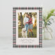 Um padrão tradicional de dente preto e vermelho enquadra uma foto vertical de solteiro neste cartão clássico de feriado. O tipo simples permite uma saudação personalizada ("Feliz Natal" pode ser mudado para "Felizes Feriados" ou qualquer coisa que você queira), nome da família e ano. A parte traseira apresenta um padrão de som vermelho e preto correspondente.