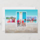 Compartilhe suas férias de praia favoritas ou fotos do tempo quente com esta areia tropical tropical e um cartão de Natal com sua mensagem em letras brancas chic. Selecione Matte para o papel mais pesado e alta definição para melhor qualidade de impressão.