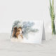 O sable bonito Sheltie ou o Sheepdog de Shetland em um fundo dos ramo do Natal perseguem o cartão de cartões de natal do Natal dos amantes