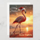 "Esta ilustração deslumbrante e única captura o espírito de um Natal tropical. Um belo flamingo rosa fica elegantemente na praia ao pôr do sol, vestido com um clássico chapéu de Papai Noel. A cena combina o calor dos trópicos com alegria festiva, completa com neve leve. Este gráfico é perfeito para cartões de Natal para aqueles que preferem clima quente, produtos de Natal temáticos do Havaí ou da Flórida, canecas, camisetas e decorações de Natal temáticas de praia."