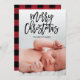 Este cartão de Natal simples e impressionante mostra sua foto favorita com uma cobertura moderna de pincel. A parte traseira apresenta um padrão vermelho de xadrez, uma segunda foto e um ponto para texto adicional.