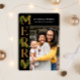 O cartão de saudação de Natal preto e dourado apresenta texto do lado da feliz decorado com lindos galhos de pinheiro verde em aquarela. Personalize este cartões de natal com sua própria foto e nome.