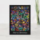Cartão de Natal inteiramente customizável que caracteriza a janela de vitral.