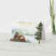 Saudação típica de Natal "Conforto e Joy" em ouro com uma linda, nebulosa, cena de montanha de aquarela com um urso de mamã e seu filhote. Ursos à esquerda, com nevoeiro ao fundo e um pinheiro grande à direita.