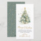 Cartões de Natal Não Fotográficos, Dourados, com Caligrafia Elegante. Este simples e festivo Cartões de natal de Natal minimalista apresenta uma árvore de natal com cor d'água com bolas de ouro decorativas e confete e um texto de saudação "Feliz Natal" que é escrito em um tipo de letra de letras agradável, escrito com letras de mão, em ouro e branco. Do lado de trás, brilho do ouro "neve" ou confete de ouro espumante sobre fundo verde empoeirado. Esta Cartões de Natal Personalizados Festivos é uma forma excelente de lembrar aos entes queridos que vocês estão pensando sobre eles nesta temporada de festas de inverno.