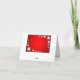 Um cartão de Natal festivo com um padrão de flocos de neve sobre fundo vermelho e mensagens alegres, elevadoras.
