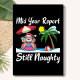 Cartão engraçado de Natal em Julho com o relatório de meio de ano do Papai Noel de "ainda travesso"