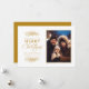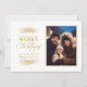 Um na moda, elegante e mínimo cartão com fotos de feriado com um design de folhagem de estilo vintage com uma bela fonte de script. Personalize com sua própria foto, nome de família e mensagem na parte traseira do cartão.