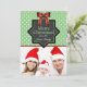 Padrão de Bolinhas verde aparado com arco vermelho. Cartão de saudação de Natal plano em forma de etiqueta para personalizar com sua própria fotografia e texto. Clique em personalizar se precisar reposicionar ou redimensionar sua foto.
