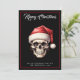 Cartão único de Natal Gótico de Caveira. Um design gótico invulgar com texto branco sobre fundo preto. Personalize facilmente com seus cumprimentos e nomes de ambos os lados.