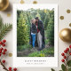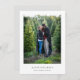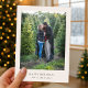 Um cartão fotográfico mínimo de na moda com tipografia clássica "Feliz feriado" a preto sobre um fundo branco minimalista e limpo e uma cor de cinza de pomba suave no verso. A foto, o cartões de natal e o nome podem ser facilmente personalizados para um toque pessoal. Um design de natal simples, minimalista e contemporâneo para destacar esta temporada de festas! A imagem mostrada é para fins de ilustração a ser substituída pela sua própria foto. A imagem do marcador de posição é de um jovem casal beijando em um campo de árvore de natal.