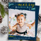 Cartão De Festividades Natal Mínimo do Dourado Script Azul Dusty
