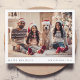 Um cartão de saudação plano com fotos de na moda feriado com tipografia clássica "Feliz feriado" em preto sobre um simples fundo branco minimalista e limpo, com borda branca e cor verde-escura na floresta ao contrário. A foto, o nome e a saudação podem ser facilmente personalizados para um toque pessoal. Um design de natal simples, minimalista e contemporâneo para destacar esta temporada de festas! A imagem mostrada é apenas para fins de ilustração para ser substituída pela sua própria foto. A imagem do marcador de posição é de um retrato da família, a família, incluindo uma menina, está vestindo camisolas e meias. Estão todos vestindo chapéus de Papai Noel, incluindo o cachorro da família, um ladrão de ouros. Eles estão sentados em um tapete de pele de ovelha em frente a uma árvore de Natal.