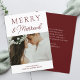 Cartão de Férias de Natal Moderno de Script Vermelho e feliz. Envie cartões de natal personalizáveis e personalizados a amigos, colegas e familiares em cartões de estilo simples, chic, elegantes e modernos de design fotofestivo, minimalista natural! Abaixo, a caligrafia apresenta sua mensagem de saudação personalizada na tipografia moderna.