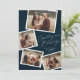 Cartão de Natal Religioso de Colagem de Foto de Script Moderno com mensagem adicional da família no verso. Clique no botão personalizar para personalizar este design com suas fotos e texto.