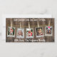 Um fundo de cerca de madeira rústico com uma linha de roupas e cinco fotos familiares penduradas com personalização linha a linha. Feliz Feriados!