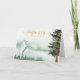 Natal típico saudando "Conforto e Alegria" em ouro com uma bela, nebulosa, cena de montanha de cor d'água com um cavalo branco de criação. Cavalo à esquerda, com neblina em fundo e um pinheiro grande à direita.