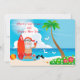 Papai Noel vestindo um maiô pronto para ir surfar em uma ilha tropical nos feriados Espalhar alegria, compartilhar alegria, feliz tudo e um feliz sempre! Cartões de natal projetados para iluminar o ano inteiro.
