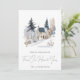 A rustic holiday card featuring a watercolor scene of a house on a snowy hill with pine trees and shrubbery and the editable headline "Happy Holidays, from our home to yours" in navy blue. Add a personal message to the reverse of the card.