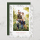 Um simples e moderno cartão com fotos de férias que enquadra sua foto favorita em um estilo Polaroide com um padrão de galhos de aquarelas verdes com neve. Edite e personalize sua saudação abaixo de sua foto em vermelho e verde. O reverso do cartão está em verde de caça firme.