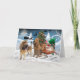 As casas de sangue puxam o trenó com Ragdoll Kitten em Santa Hat contra o pano de fundo da cena de inverno com Papais noeis e Reindeer voando sobre a cabeça.