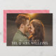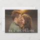 "Feriados mais felizes da nova Sra. & Sra. ______" Este cartão com fotos de feriado apresenta uma tipografia branca clássica sobre uma foto horizontal de cheio. É a escolha perfeita para um novo casal. Personalize este design simples com seu próprio nome e saudação. As cores da fonte e a cor do backer são completamente personalizáveis.