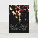 Design de Natal com uma cascata de estrelas ouros de tom vermelho sobre um fundo da noite escura, com as palavras "Estrela da Maravilha, Estrela da Noite" do segundo verso da Carol de Natal, We Three Kings of Orient Are. Dentro do cartão que ele diz, "O Natal Deseja!" Este texto é personalizável para que você possa alterá-lo para sua própria mensagem, se quiser.