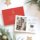 Envie este belo nosso primeiro cartões de agradecimentos de Natal, recém-casado, com uma foto na frente e um texto moderno que diz "Nosso Primeiro Natal e uma folhagem festiva de amora de água. Substitua a frente pela sua foto de casamento. O dorso é um vermelho festivo com uma árvore de Natal fofa. Design perfeito para o seu cartão de Natal.