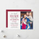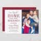Este Cartões de foto de Natal "Uma nova casa para os feriados" duplica como um anúncio comovente! Personalize com sua família ou foto da casa e personalize o elegante texto vermelho de morango com seu sobrenome, nomes de membros da família e seu novo endereço na rua da casa. Um padrão de listras horizontais veste a parte traseira da placa.