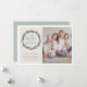 O design de Cartões de foto de Natal de tipografia elegante "New Home for the Holidays" também serve como um anúncio comovente. Anuncie sua mudança de endereço para os entes queridos nesta temporada de férias de inverno. O cartão moderno rústico apresenta um quadro familiar (ou foto da sua nova casa) adjacente a uma camada de água pintada com cor de louro verde com pedaços de pínus, bagas e pinecones. O esquema de cores neutro inclui cores brancas, verdes, douradas, metálicas, castanhas, esbranquiçadas e brancas nítidas. Personalize com seu sobrenome e novo endereço residencial. Um plano de fundo do estilo de aquarela verde-laurel que coordena o traço de volta da carta.